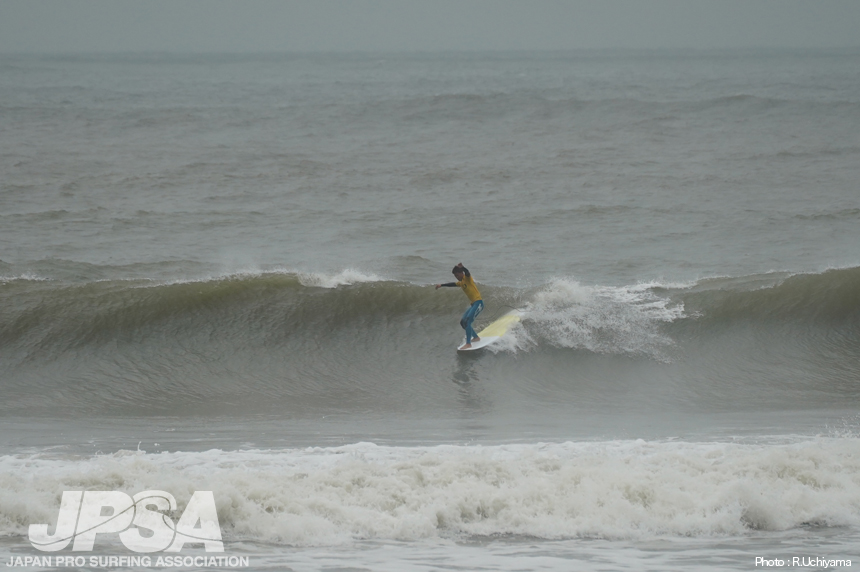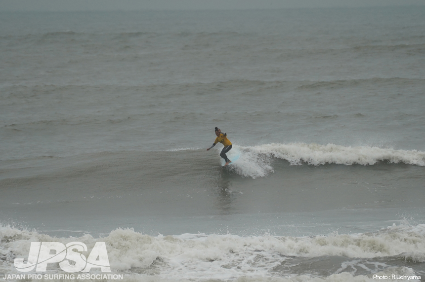 ヒート2は小山みなみ、田岡なつみ、大島みどりと伊藤奈央子。 田岡がやはり攻めのサーフィンで1位に出るとグランドチャンピオンがかかる小山が追う。残り10分で大島が乗り2位へ。小山のニードは1.55。その後動きがあるが順位は変わらす小山のニードは2.34。残り1分で小山が乗り、残り30秒で大島、伊藤も乗り終了のホーンでポイントコールまちとなる。小山は2.87で逆転2位へ上がる大島と伊藤のポイントは届かず1位田岡、2位小山となった。