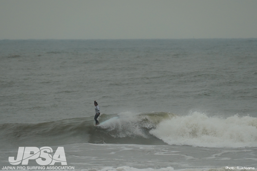 ヒート2は森大騎、真田和斗、田沼亮と櫻岡甲太の4名。真田にはルーキーオブザイヤーのタイトルがかかっている。田沼はサイドオフもやや強くなりファーストブレイクは厚めなので重めのシングルフィンで登場。全員ライディングを終えたところでは森がしっかりとマニューバーを入れて1位に。2位には田沼がつける。そして櫻岡が5.57を出して2位となるとそのまま終了となった。