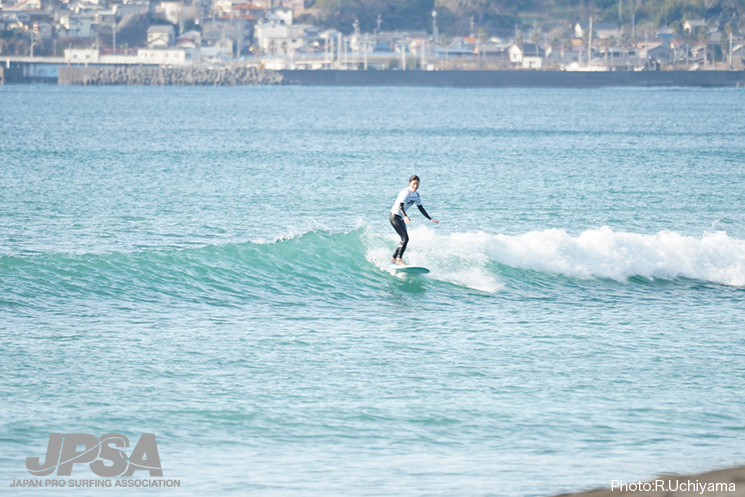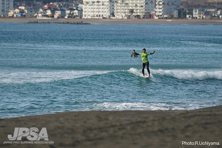 ヒート1にはNSAロングボードクラス3位の田原ありい選手がクレジット。