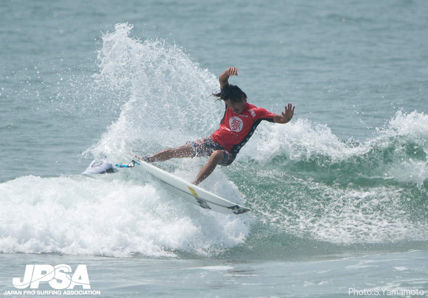 ヒート1は加藤嵐、塚本勇太、村田嵐と大野修聖の4名。大野は昨年のこの大会優勝者。連覇なるか?さらに加藤がツアー4連覇を狙うには大事な初戦となる。序盤から塚本が飛ばし、2本目に6.83をマークしてトップへ。加藤も3本目に6.00を出し追う展開となり後半へ。大野も2本目に5.23を出し追うがバックアップが伸びない。村田も4点台2本とまとめるがニードが6点台と差を縮めることができない。塚本が4本目に5.50を出して突き放しヒート終了。1位塚本、2位加藤となった。