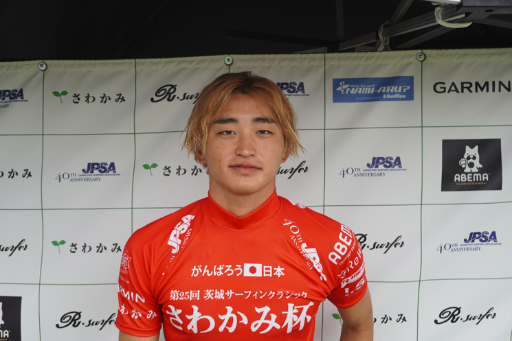 ヒート3は前回2019年大洗大会で優勝した渡辺愛がクレジット。潮が上げてなかなかショルダーの張った波が来ないなか、トライアルから勝ち上がった松野杏莉(あんり)が見事1位でラウンドアップし、公認プロ資格を獲得した。2位には1本のライディングだったが渡辺が入った。