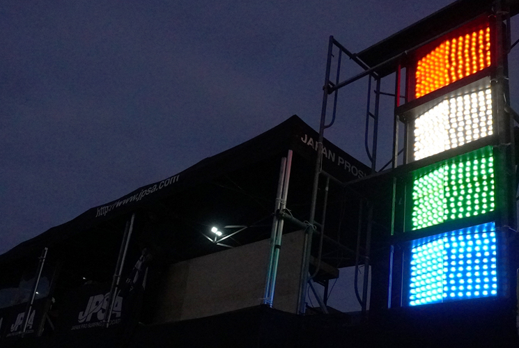 ヒート12はDAY1の最終ヒートになる。 ここには現在ツアーランキング3位の須田那月がクレジット。そしてアマチュアの松山黎音は地元プロロングボーダー松山欣則の娘さんだ。ヒート後半まで西元萌エミリと岡田小夢希がヒートを引っ張る形で進み後半3位だった須田が右側へポジションを移すと残り時間3分で2マニューバー入れ逆転1位へジャンプアップしそのままヒート終了。2位には岡田が入り、松山は惜しくも4位で終了。ヒート終了後松山が涙を流しながら戻って来る姿が印象的だった。